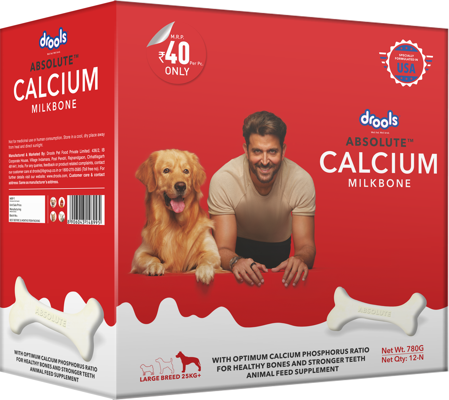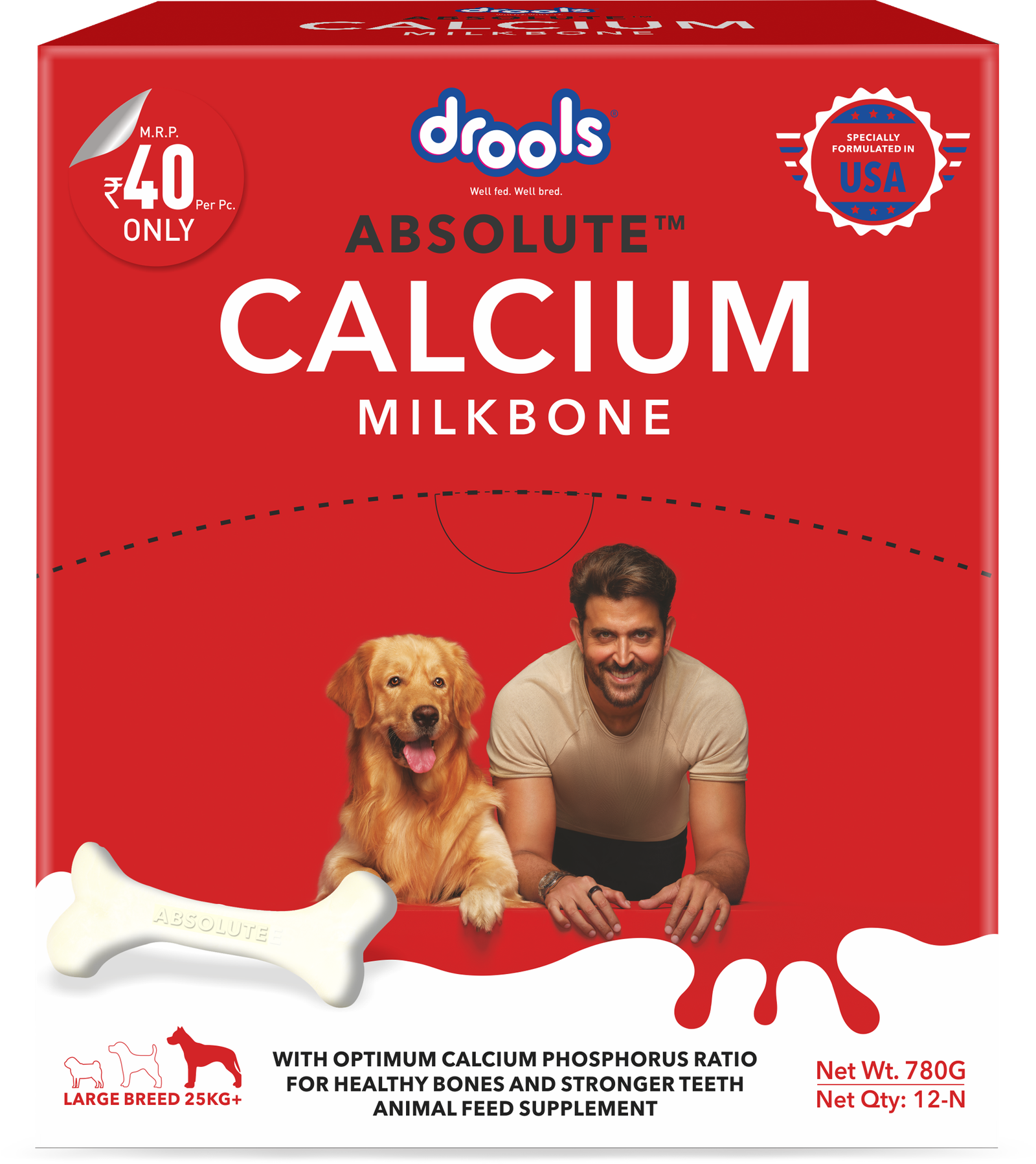 Give your pet the power of calcium with Drools Absolute Milk Bone. Calcium is very important to us as well as for our pets. Absolute Milk bone supplement has the right ingredients to keep a dog’s bones healthy and functioning at their optimum. It contains calcium and phosphorus in the right ratio, along with all the essential vitamins to increase connective tissue and tendon strength. Daily usage promotes your four-legged friend’s health.